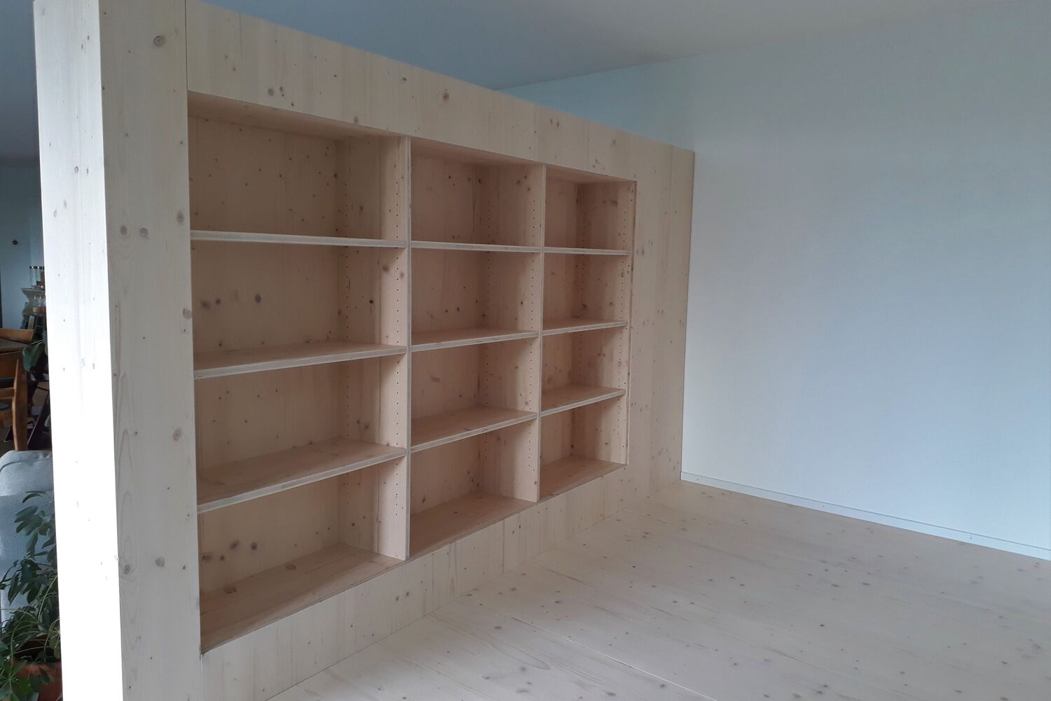 Gerne stellen wir Ihnen ein Einbauregal nach Mass her, welches sich in Ihre bestehende Wohnumgebung einfügt.